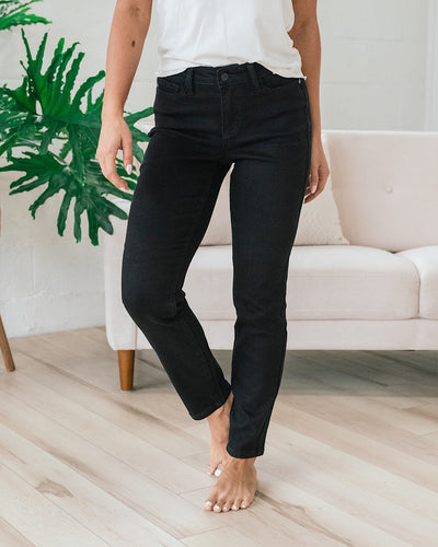 9.5” rise: Referenced size (noted in each product description) has a 9.5” rise. Rise is measured from from the middle of the crotch seam to the top of the waistband. As size increases, so will the rise measurement (approx. ¼” per increase in size.)