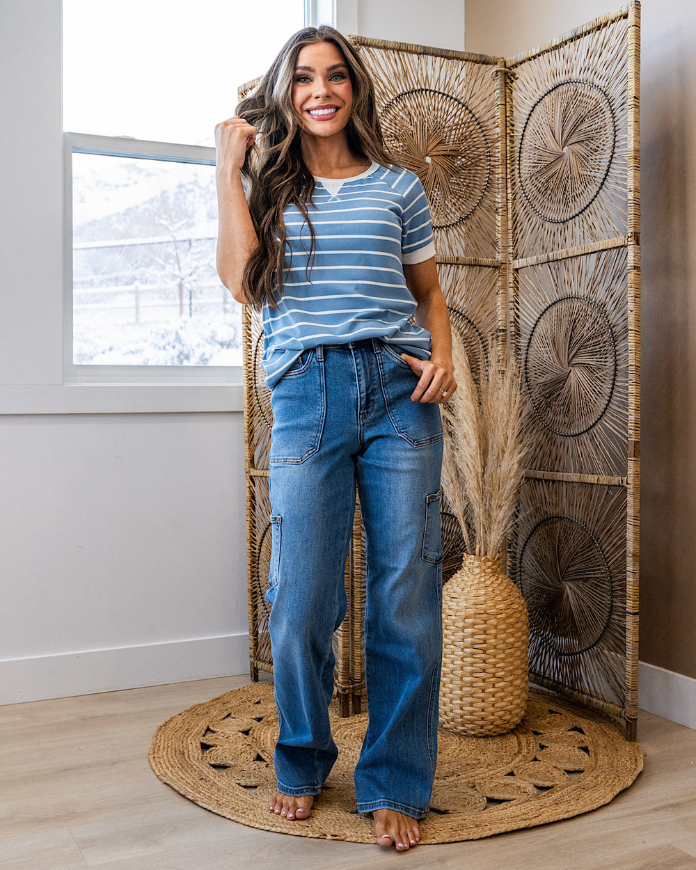 Jana Heathered Cap Sleeve Top - Denim FINAL SALE