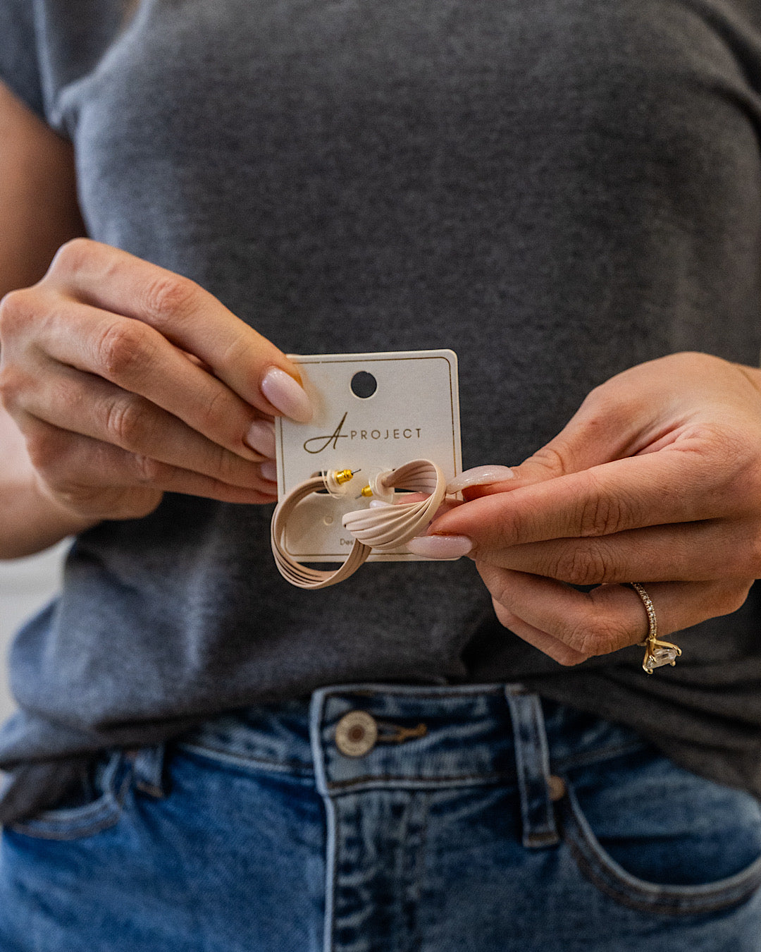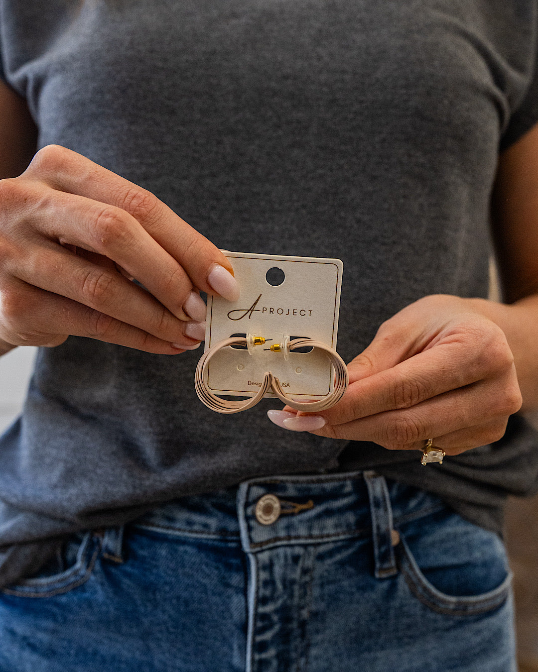 Overlapping Hoop Earrings - Beige Trendy Wholesale