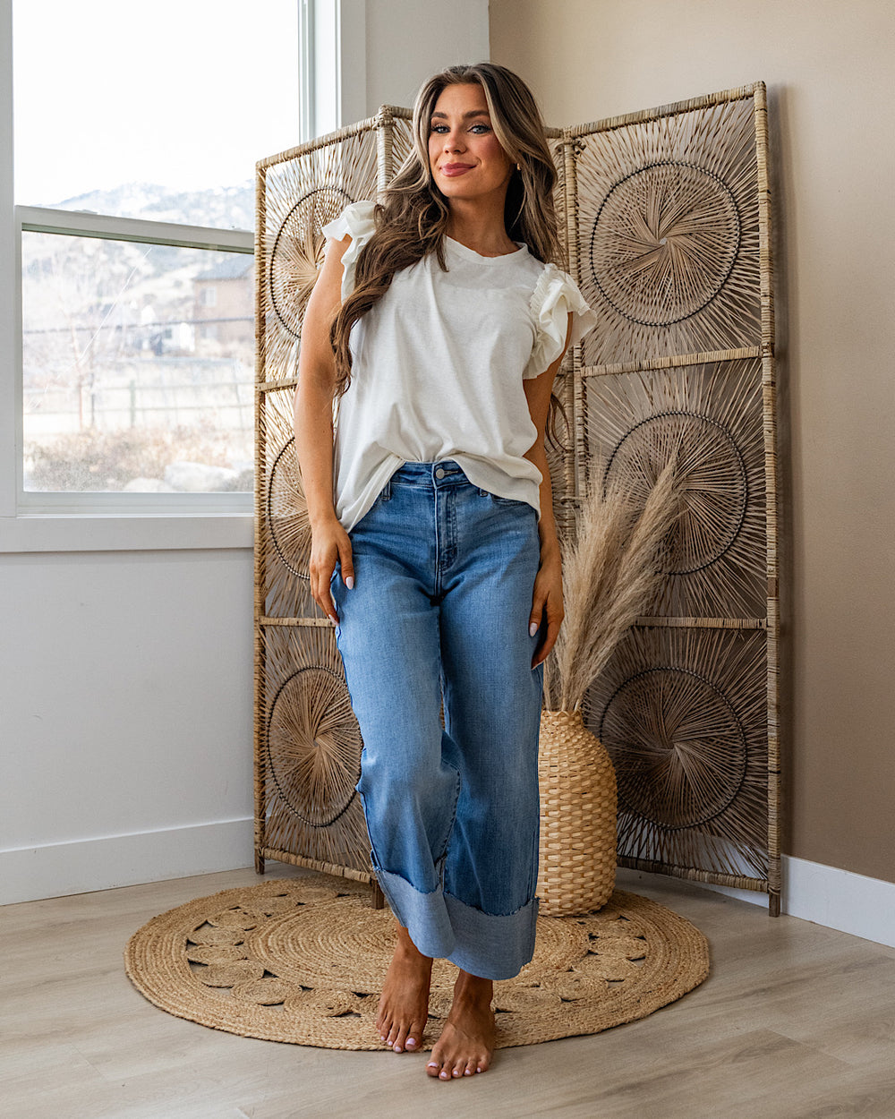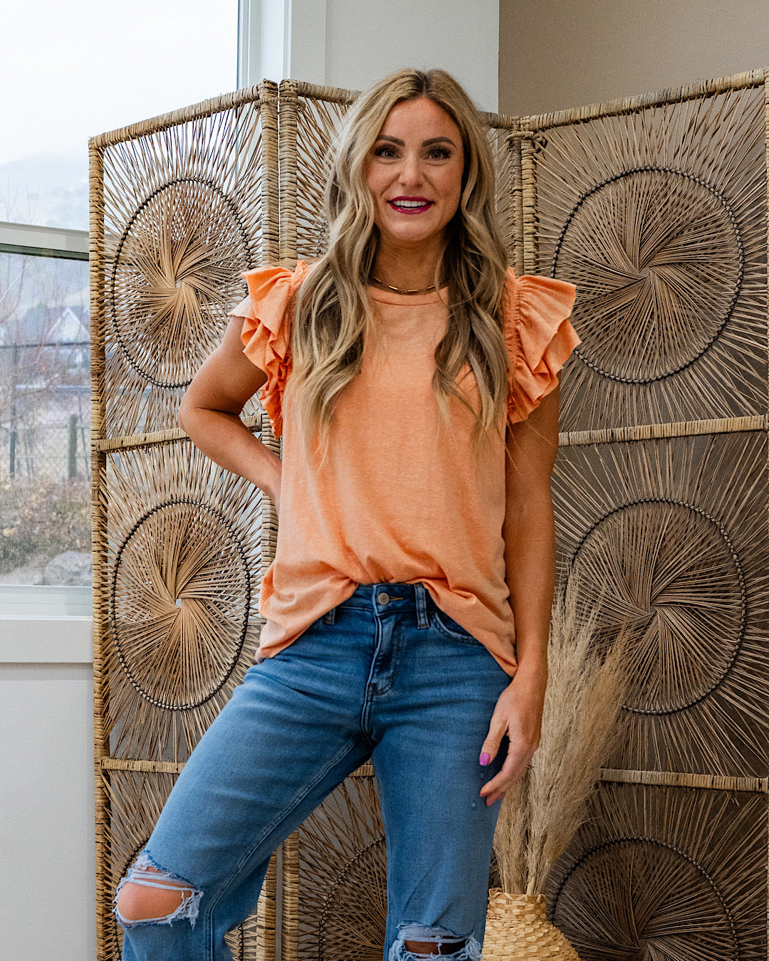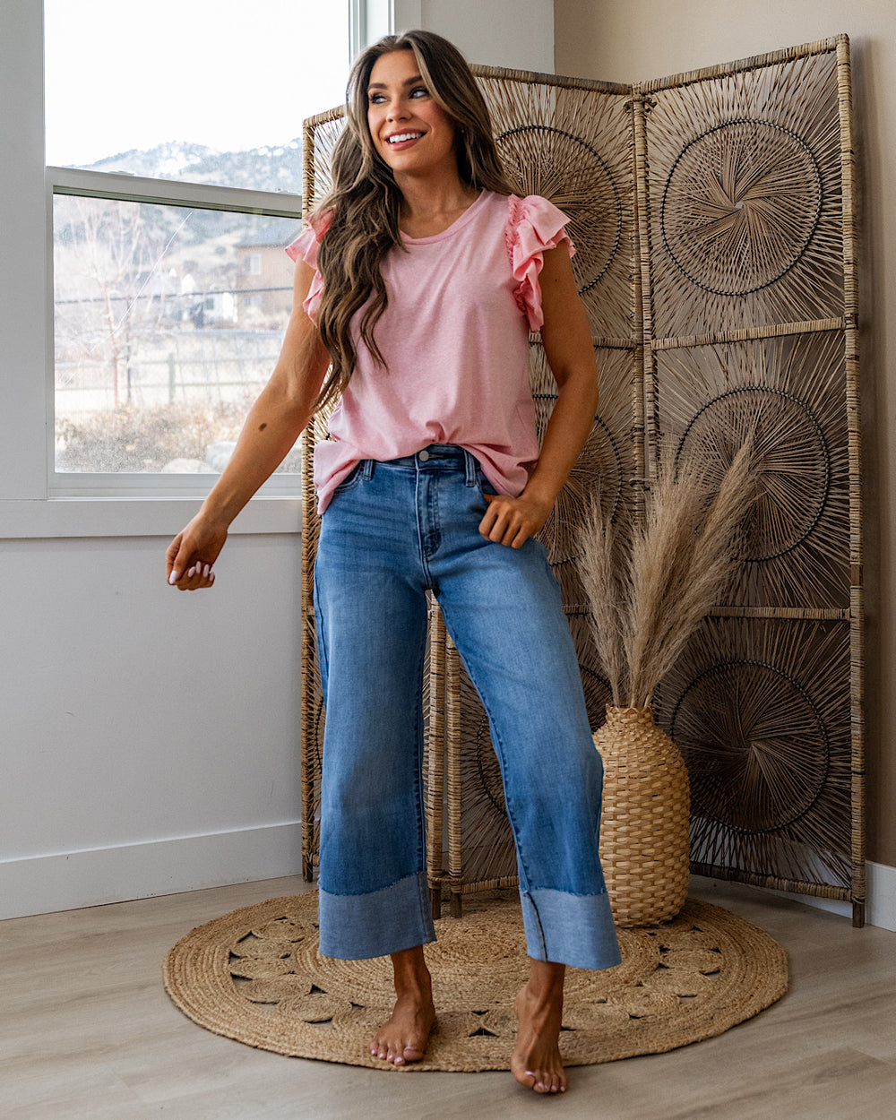 NEW! Livie Ribbed Knit Ruffle Shoulder Top - Wine