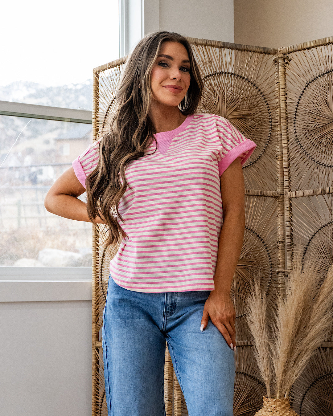NEW! Mia Ribbed Crewneck Top - Burgundy