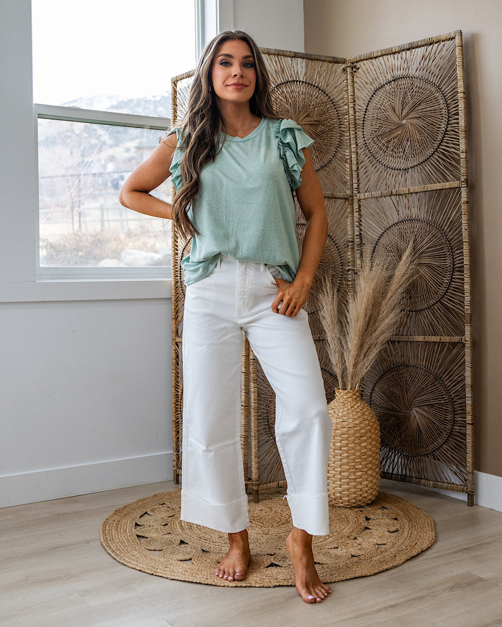 NEW! Mia Ribbed Crewneck Top - Forest Green