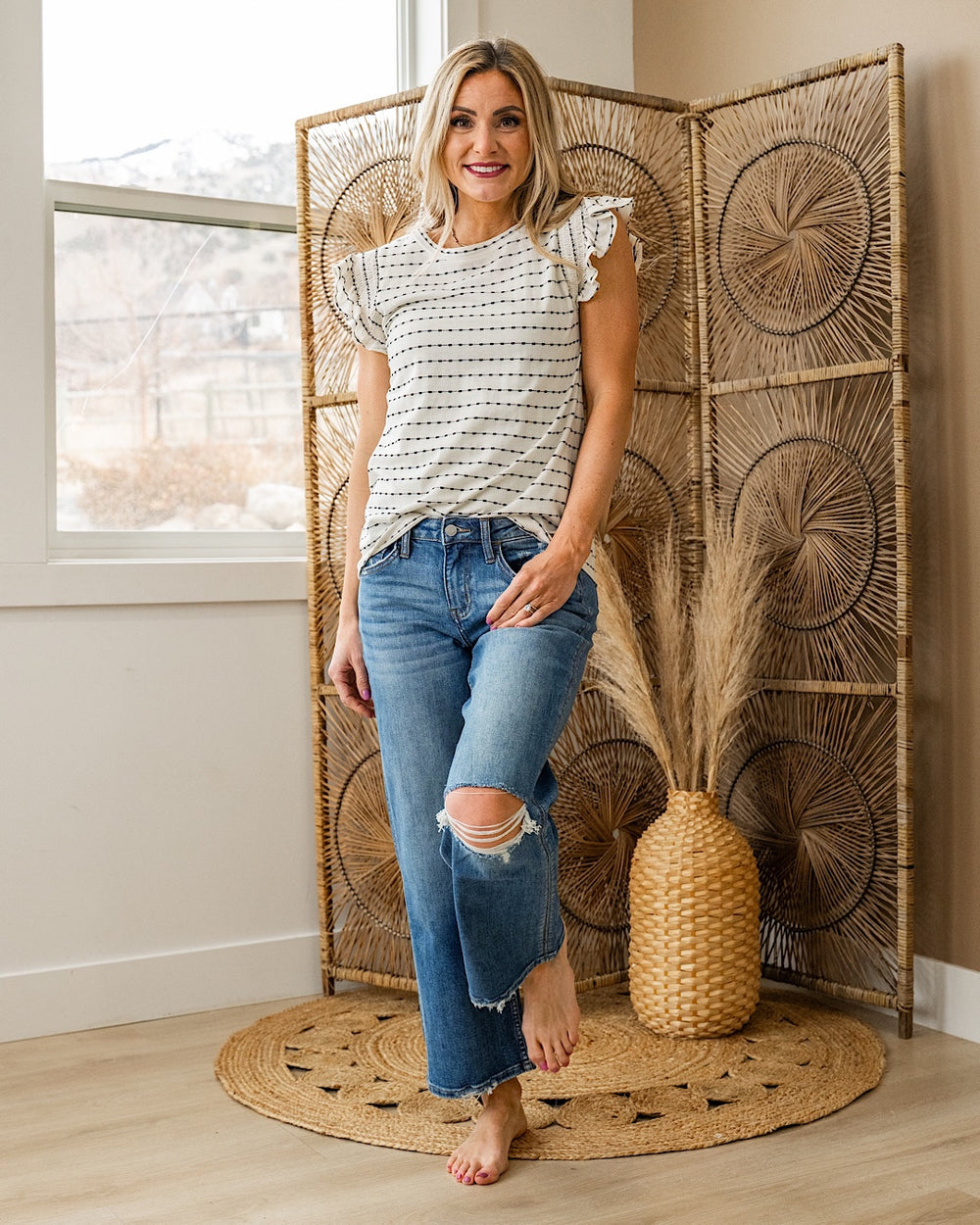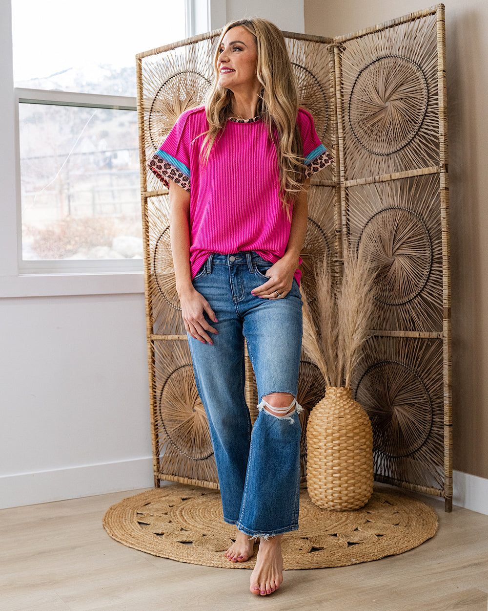 NEW! Bria Ribbed Top with Leopard Details - Taupe