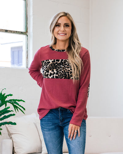 NEW! Bria Ribbed Top with Leopard Details - Taupe