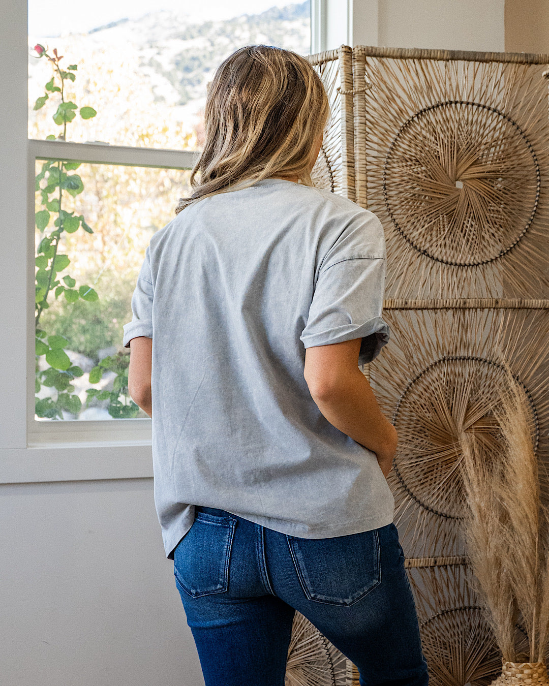This oversized graphic tee is the kind of comfy favorite you’ll reach for on casual days, errands and laid-back weekend plans. The mineral wash denim gray gives it that perfectly worn-in look while the bold screen print graphic keeps it fun styled with your favorite denim or cutoffs.