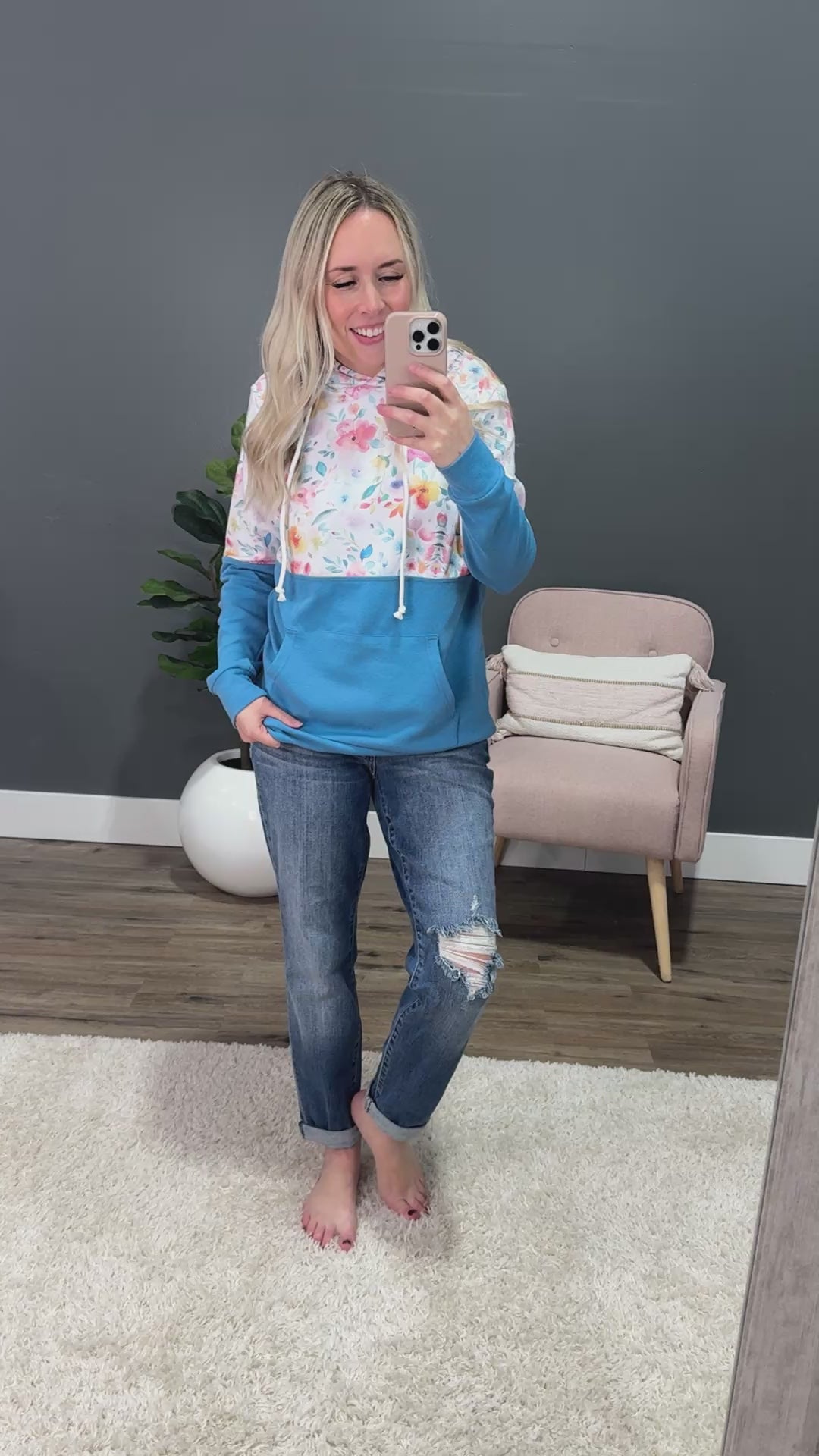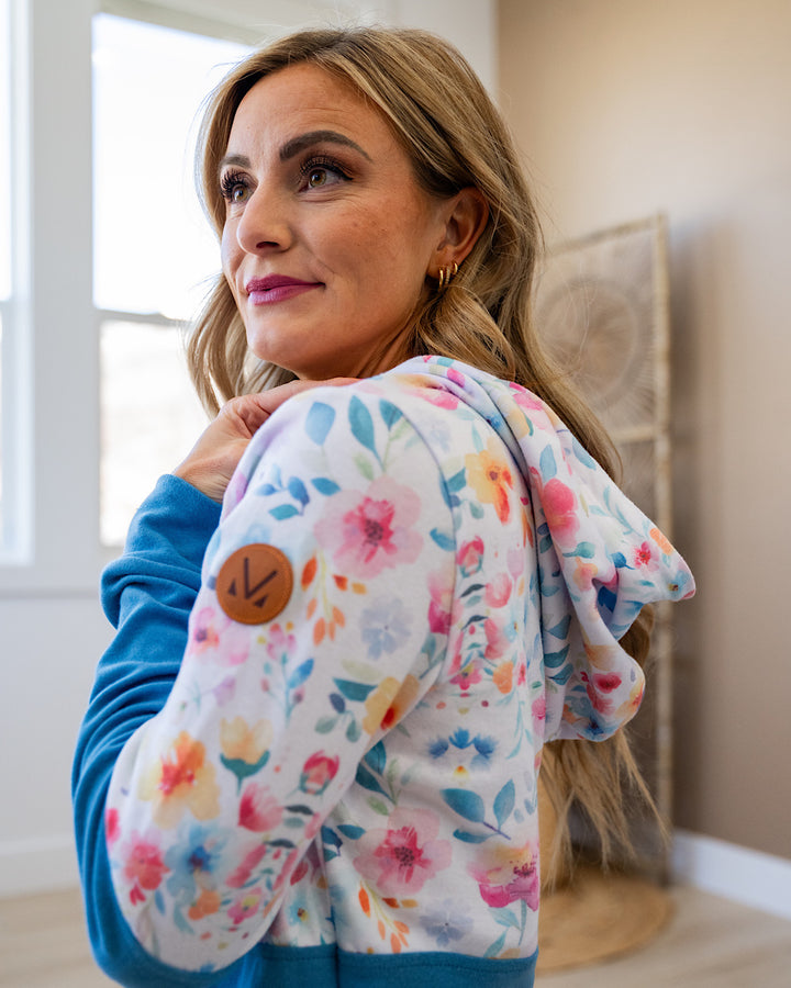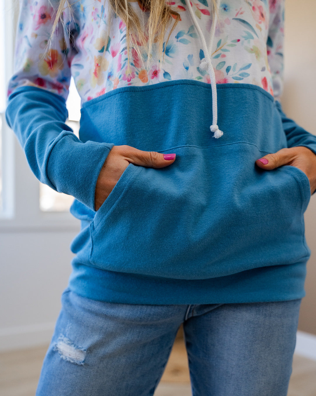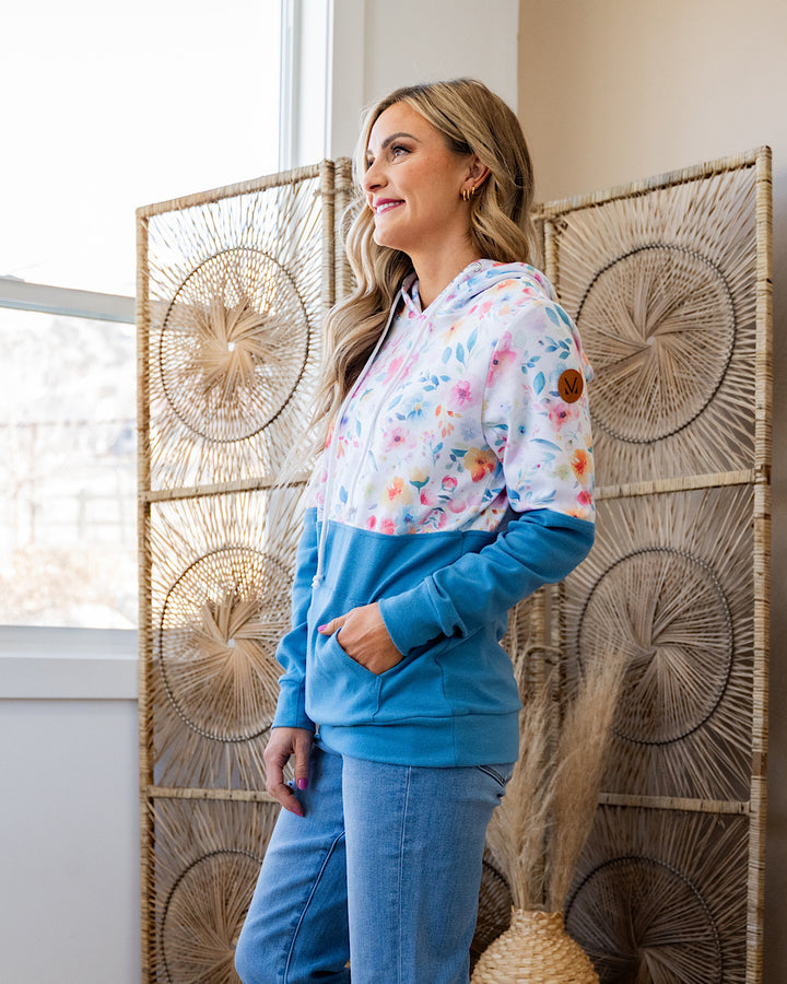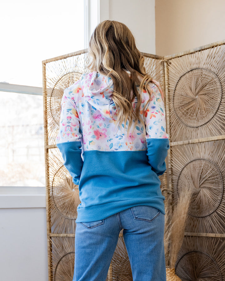 Hailey Pullover Color Block Hoodie - Watercolor Floral