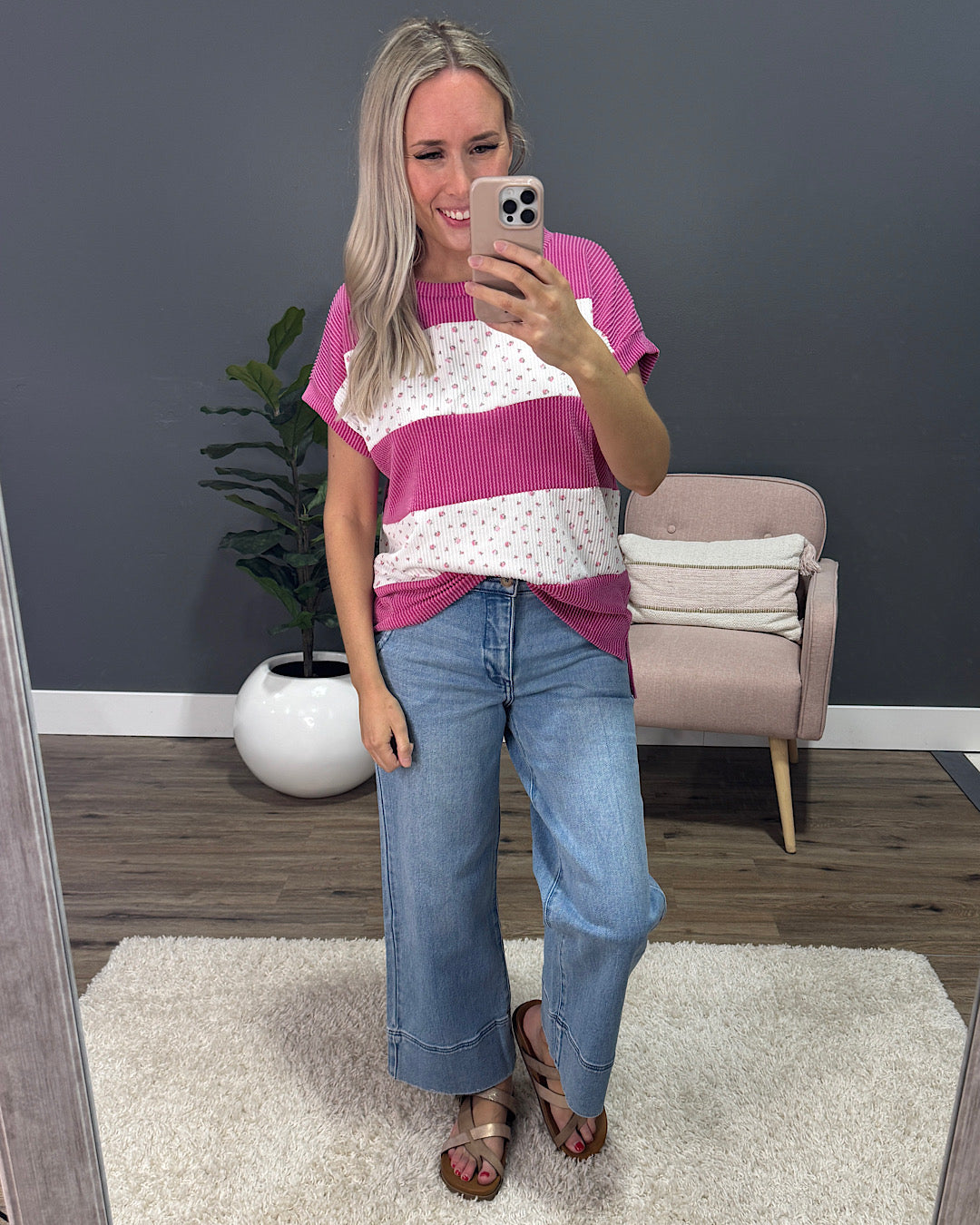 Judy Floral Corded Contrast Top - Color Options Available! 7th Ray Magenta