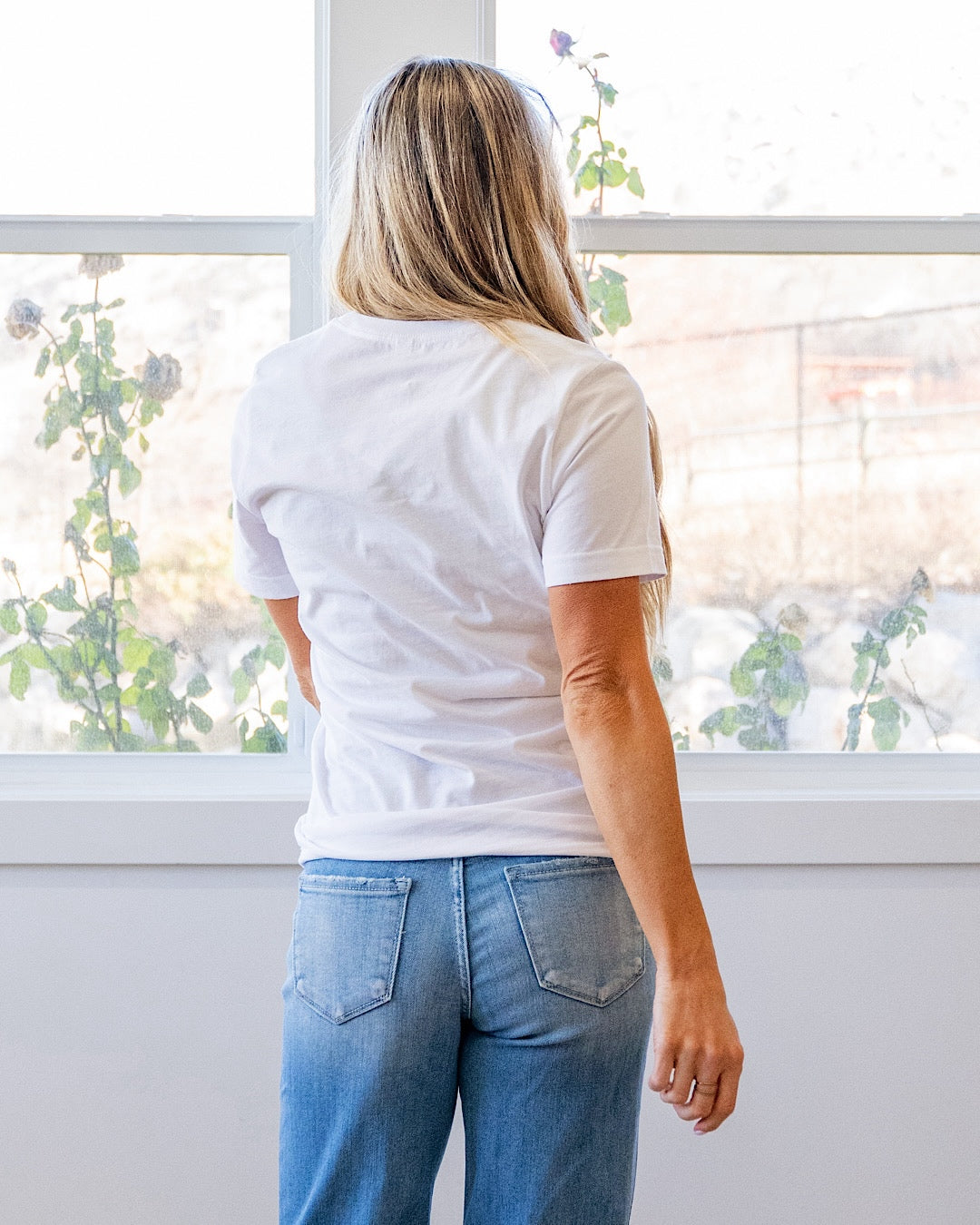 Courtney is 5'6" and wears a size 25 in jeans, a small in bottoms and a small in tops.