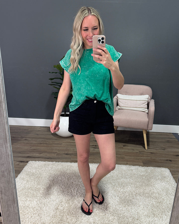 Courtney is 5'6" and wears a size 25 in jeans, a small in bottoms and a small in tops.