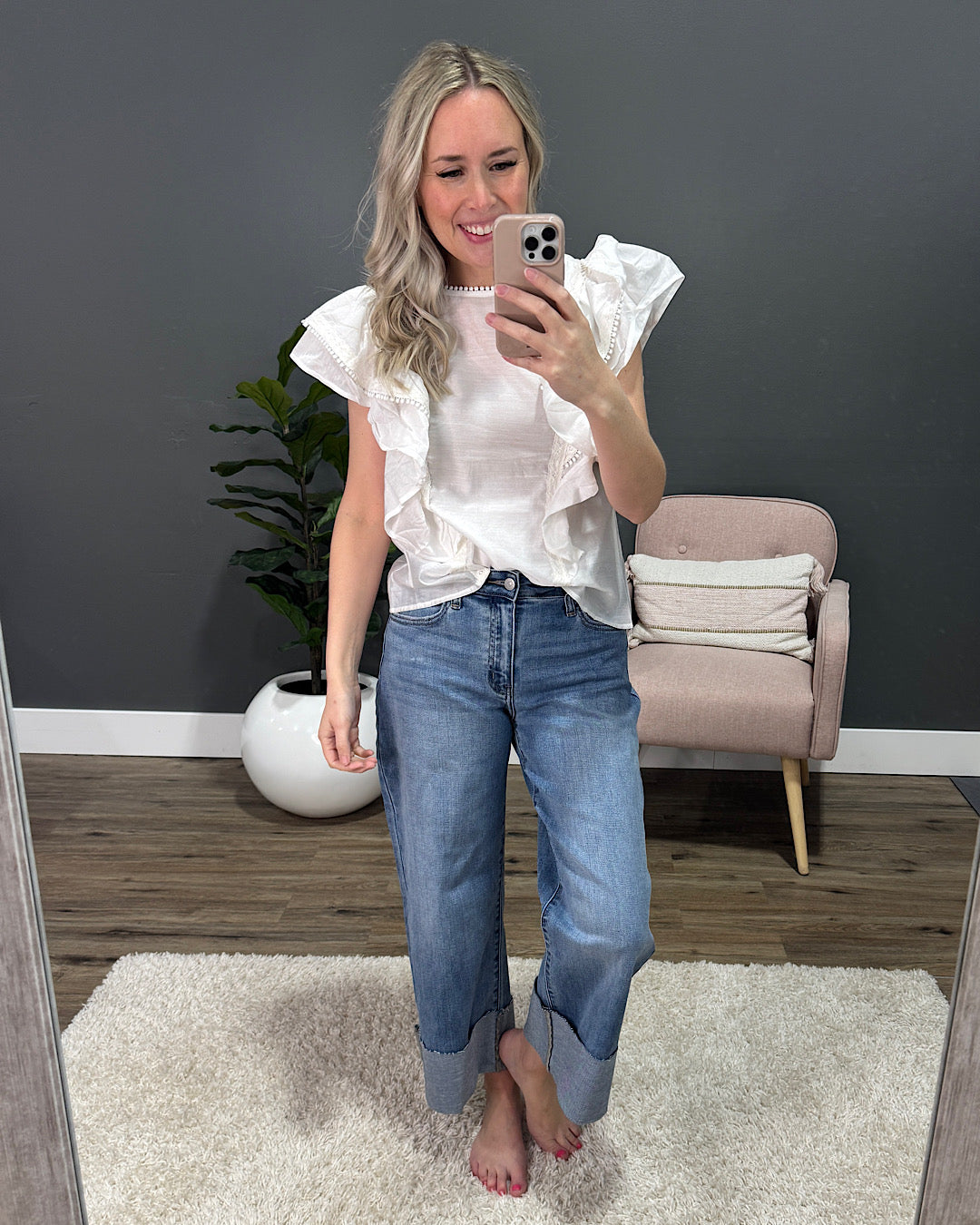Sophie Ruffled Blouse with Lace Trim - Ivory