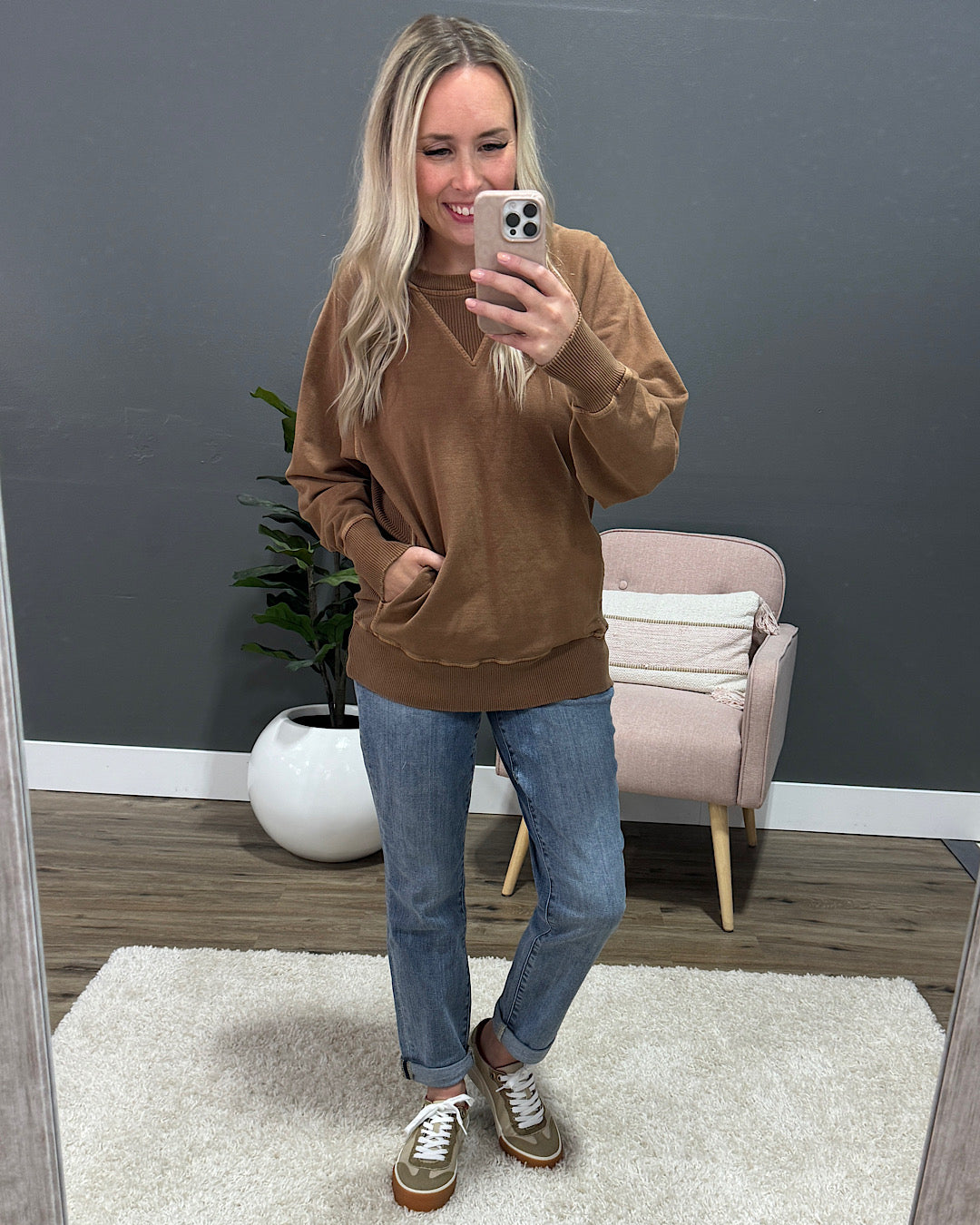 Girlfriend Crewneck Sweatshirt - Deep Camel