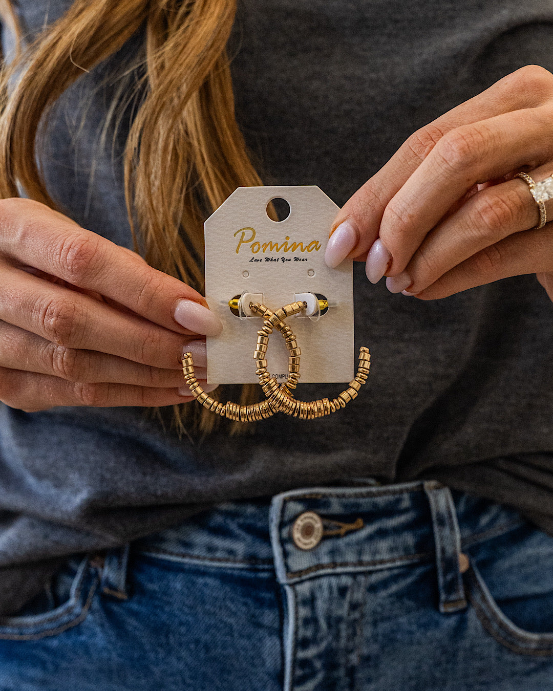 Metallic Contrast Beaded Open Hoop Earrings - Gold