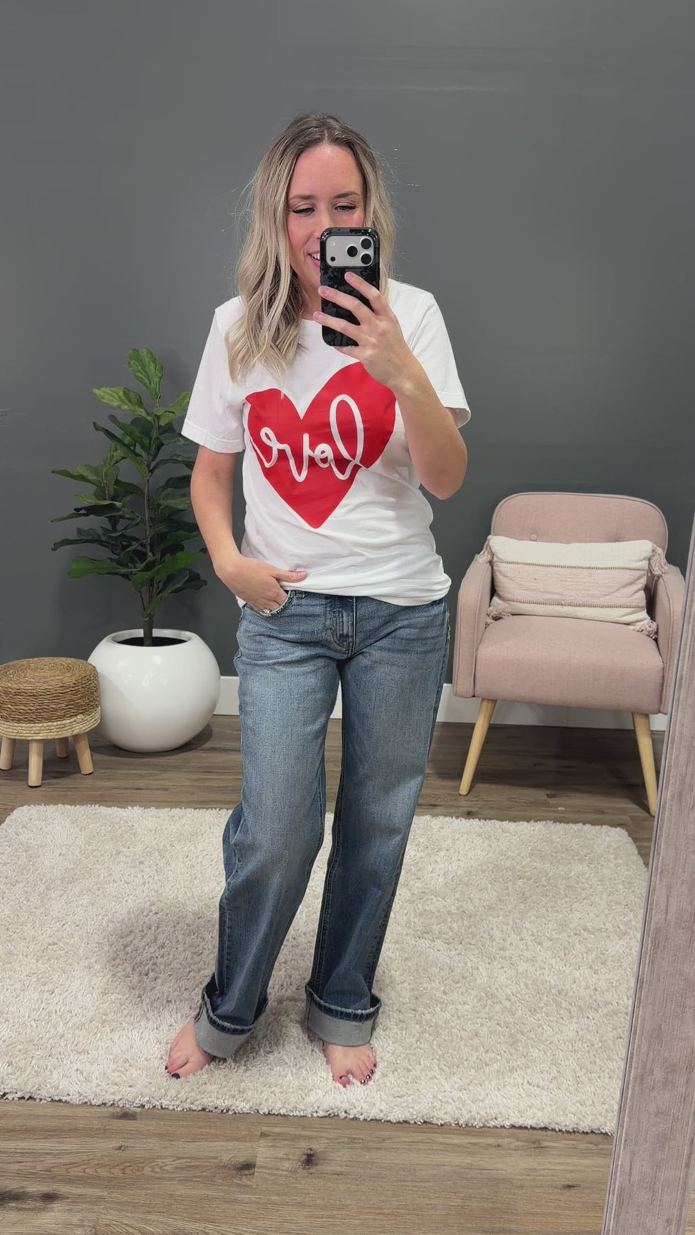 Courtney is 5'6" and wears a size 25 in jeans, a small in bottoms and a small in tops.