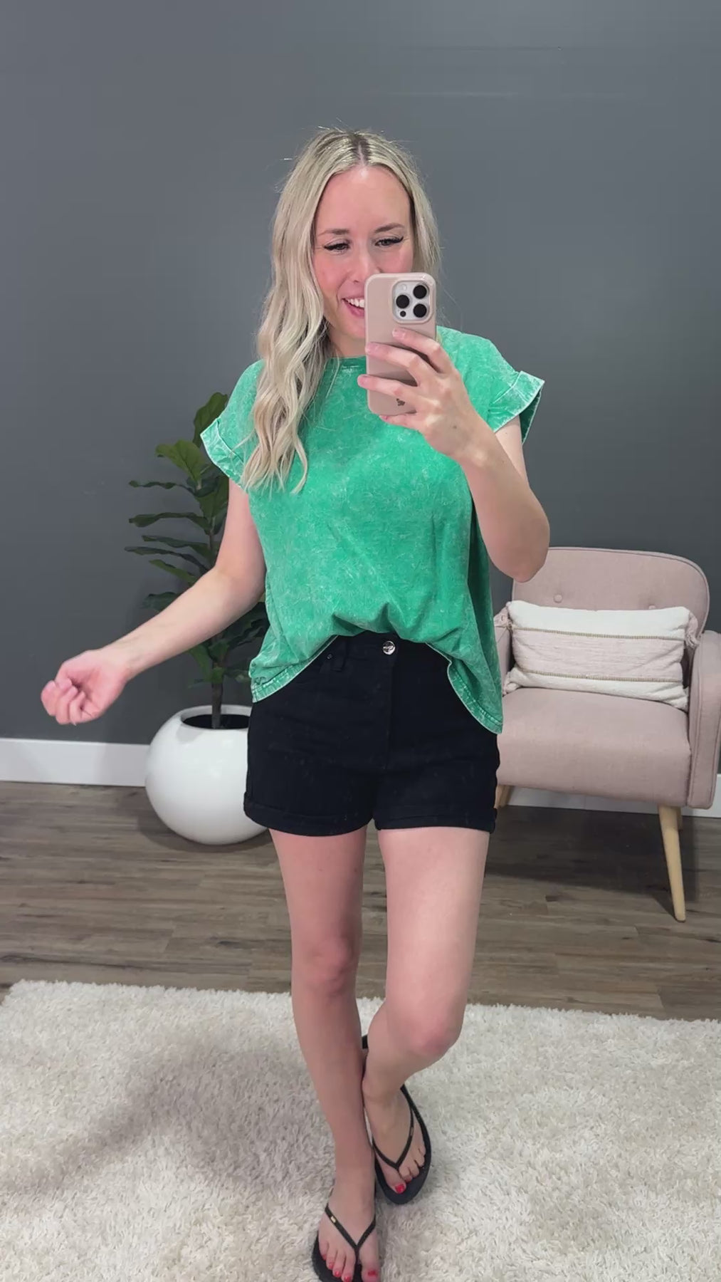 Mineral Wash Roll Sleeve Top - Orange FINAL SALE