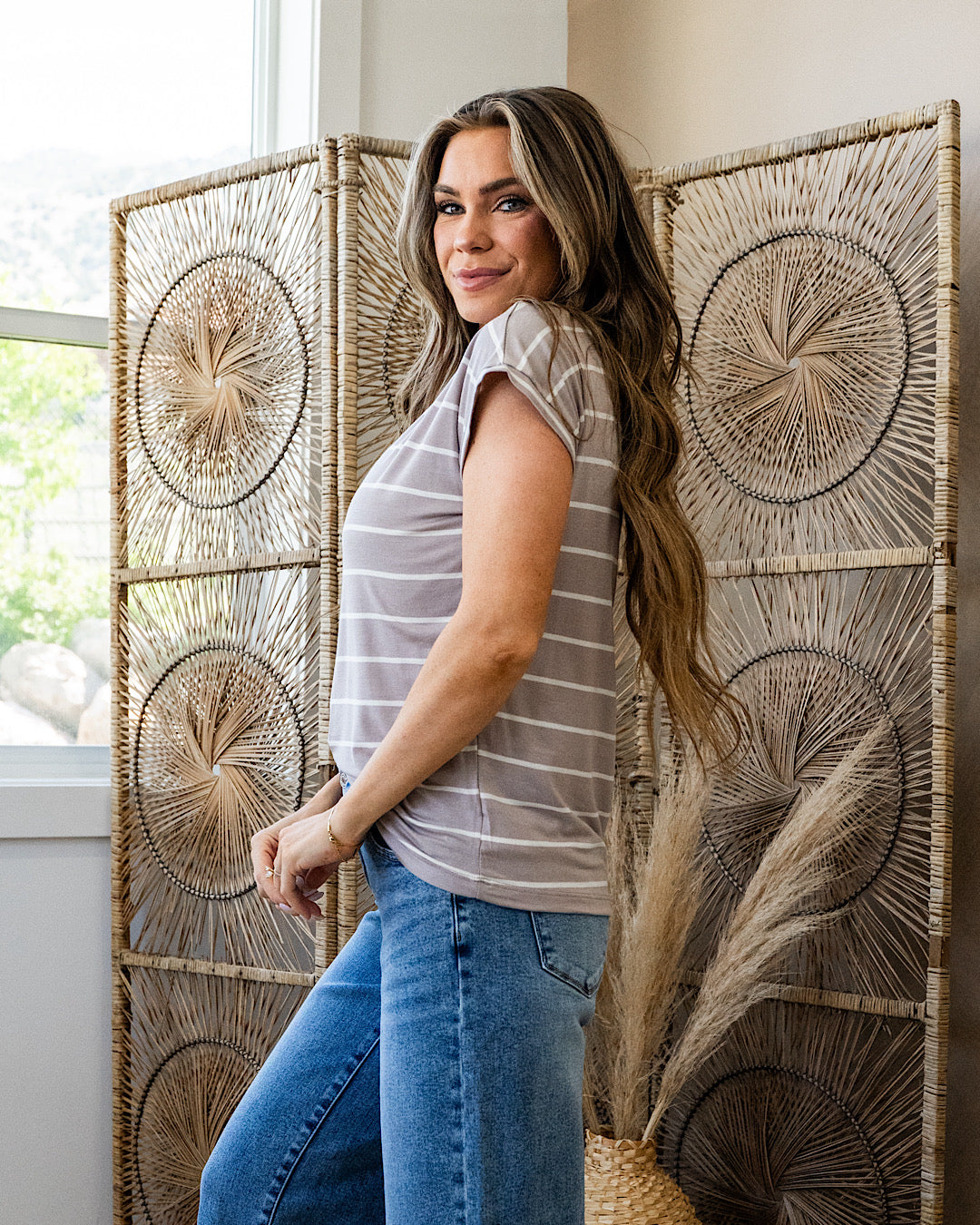 Alyssa is 5'5" and wears a size 25 in jeans, a small in bottoms and a small in tops.